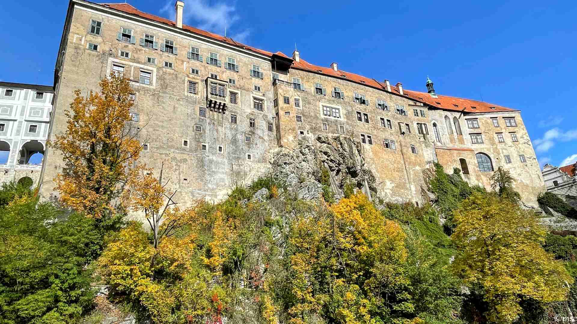 Weltkulturerbe Krumlov (Krumau) in der Tschechischen Republik an der Moldau. In einem Wachsfigurenmuseum ist der brave Soldat Schwejk sitzend dargestellt.