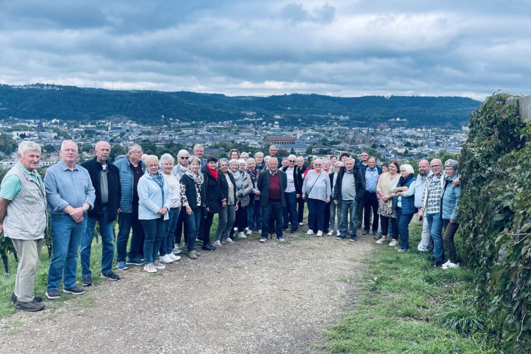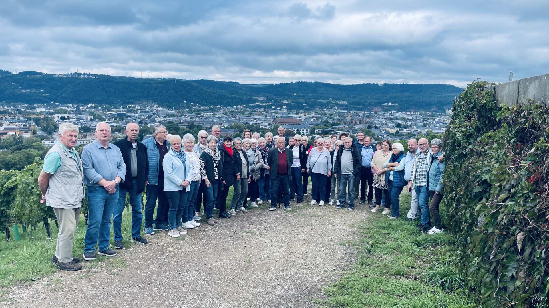 Im Rahmen der Stadtrundfahrt konnten wir ein schönes Gruppenfoto in den Weinbergen oberhalb von Trier machen.