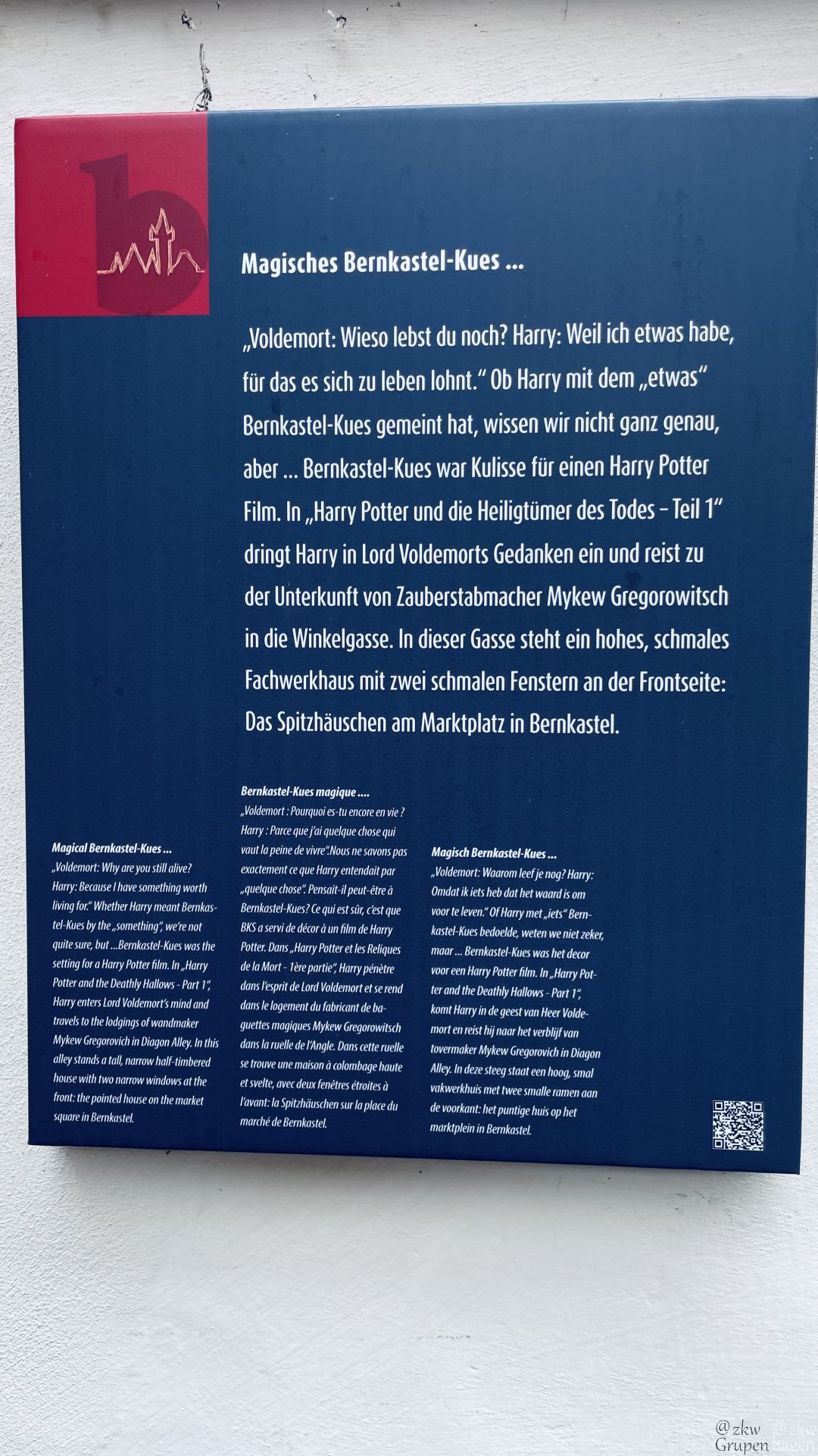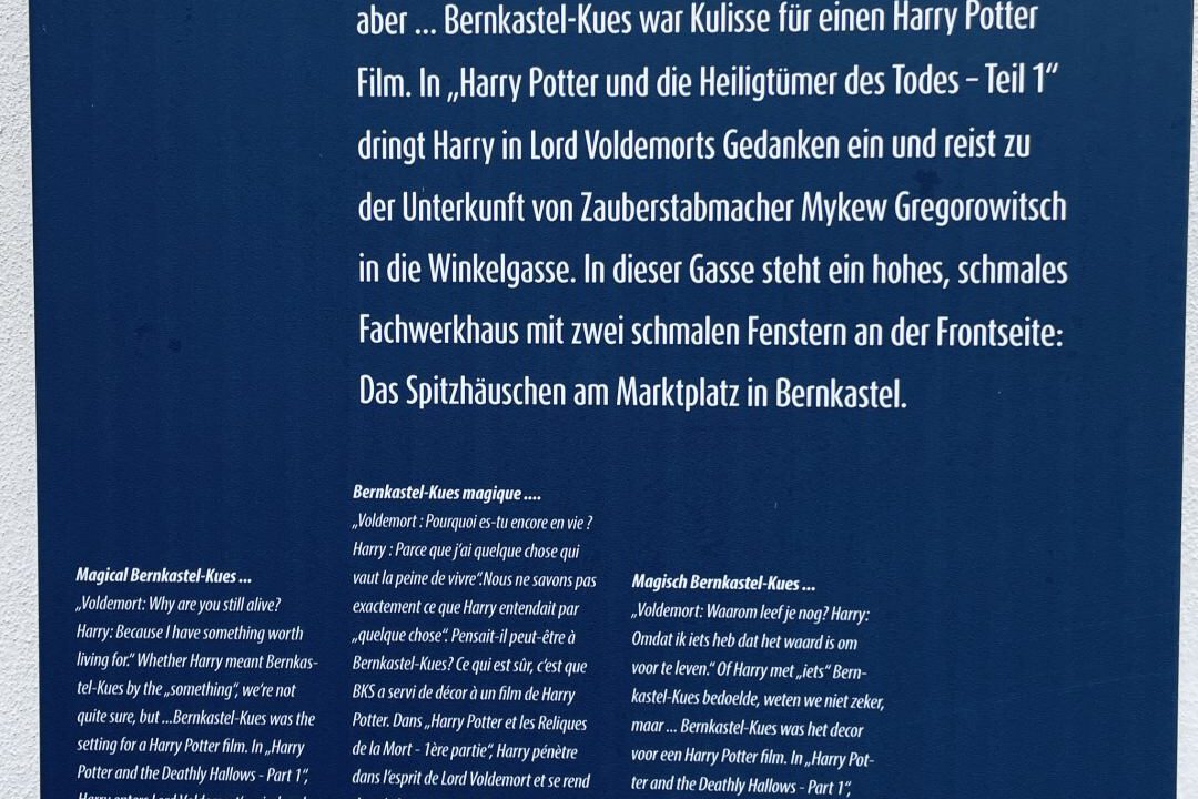 Bernkastel hat eine bezaubernde Altstadt mit zahlreichen Möglichkeiten einzukehren oder sich in der Fußgängerzone zu stärken. Auch konnten wir das Fachwerkhaus aus „Harry Potter und die Heiligtümer des Todes“, zumindest von außen, besichtigen.