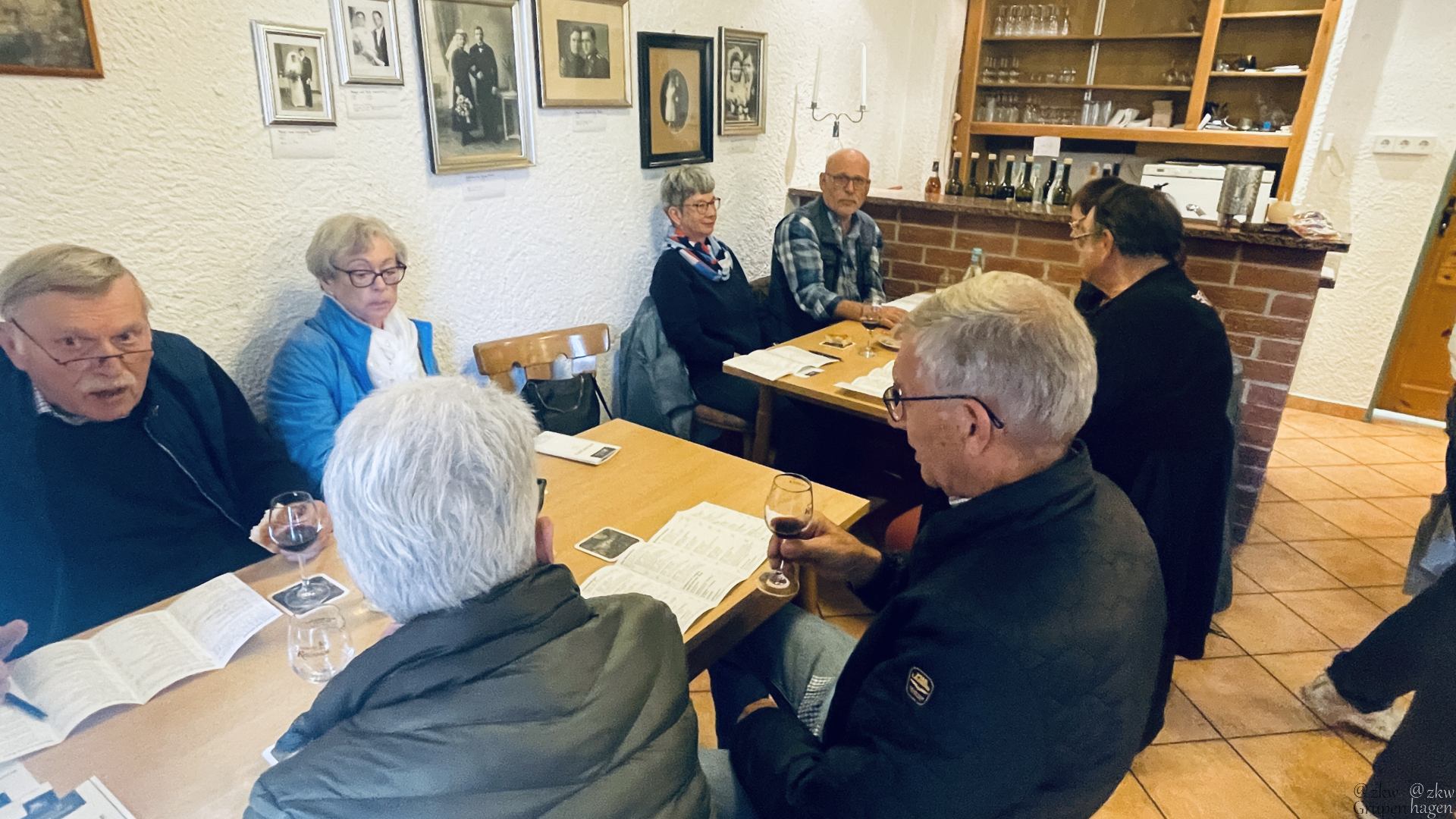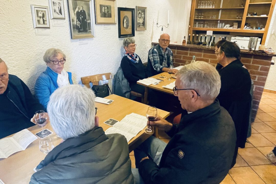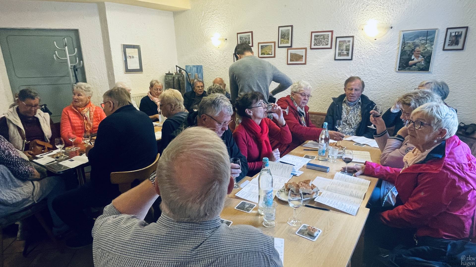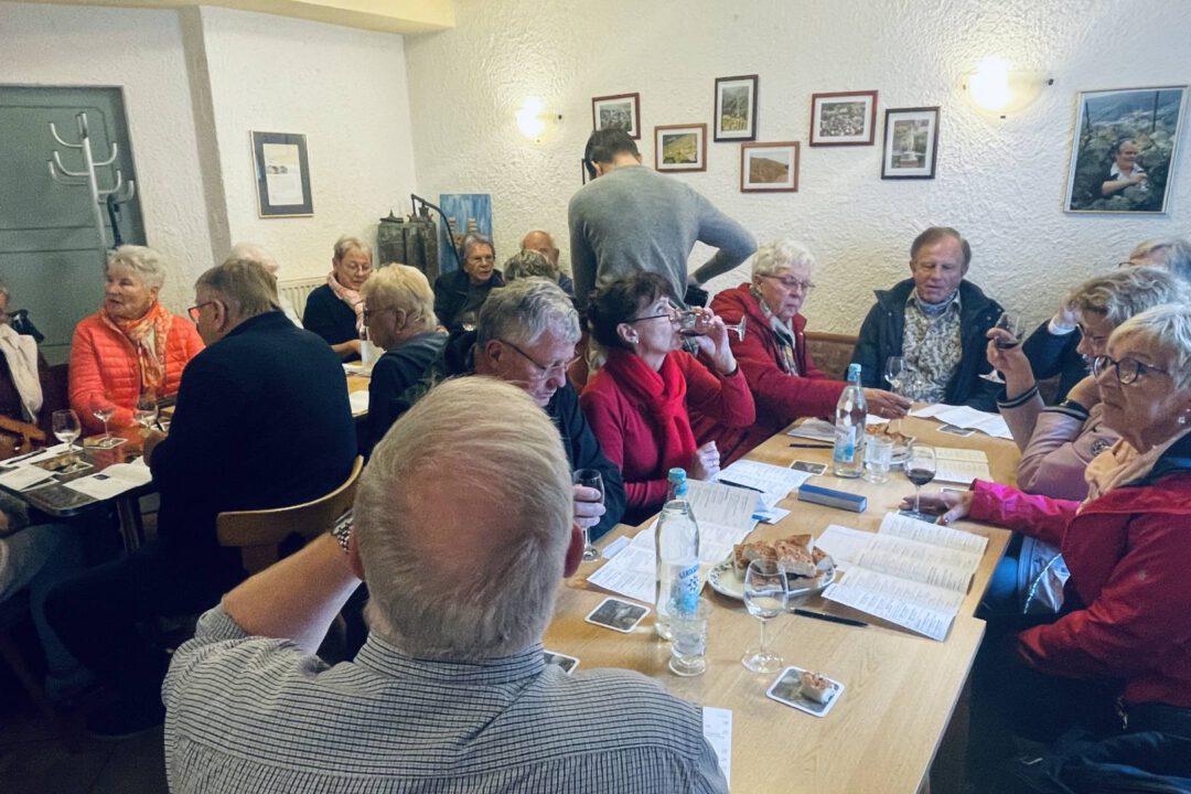 Zum gemeinsamen Abendessen um 18:30 Uhr waren wir wieder zurück in der Neumühle. Schon etwas mit denen Weinen vertraut, wurde es dann auch später am Abend.