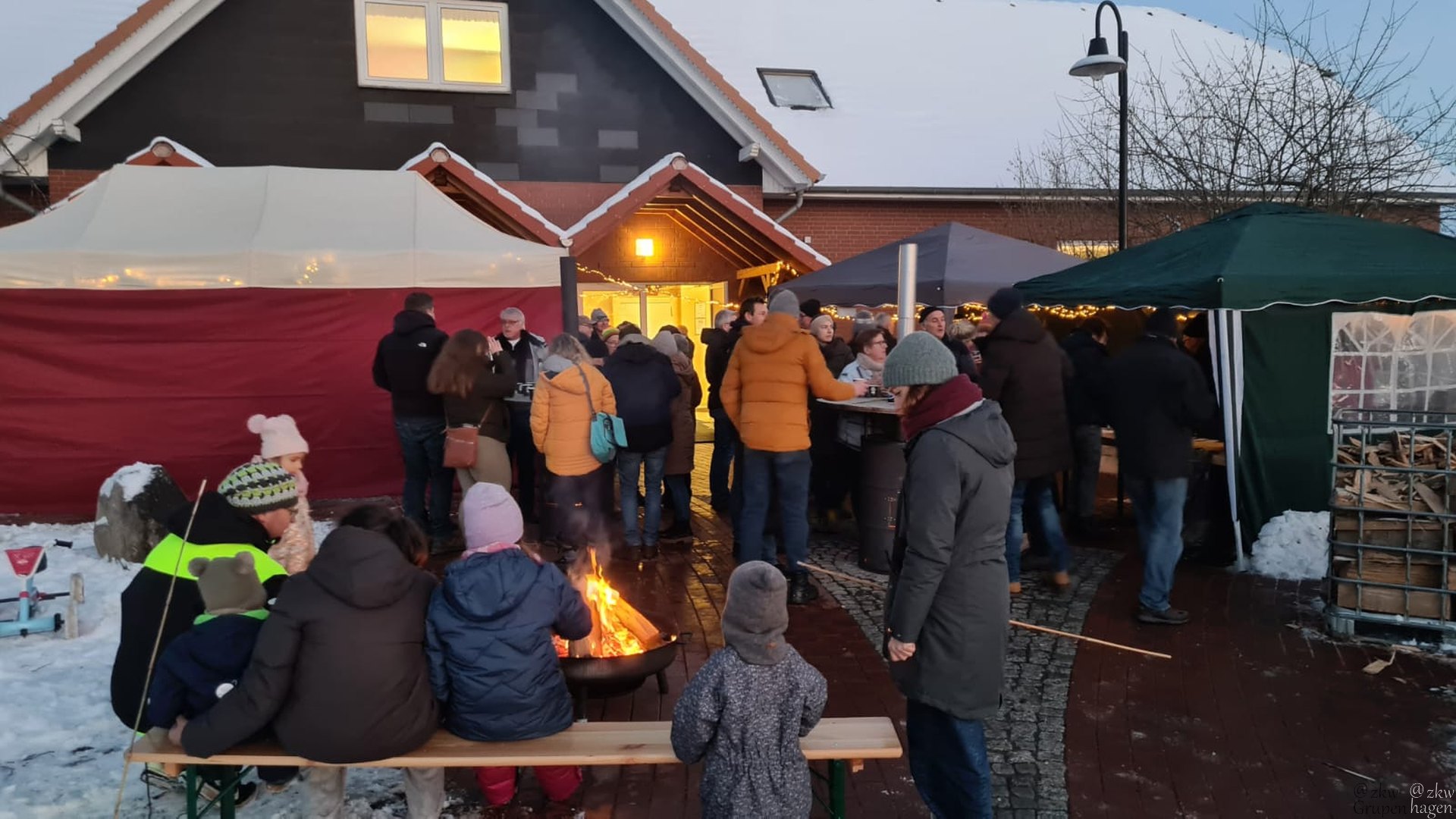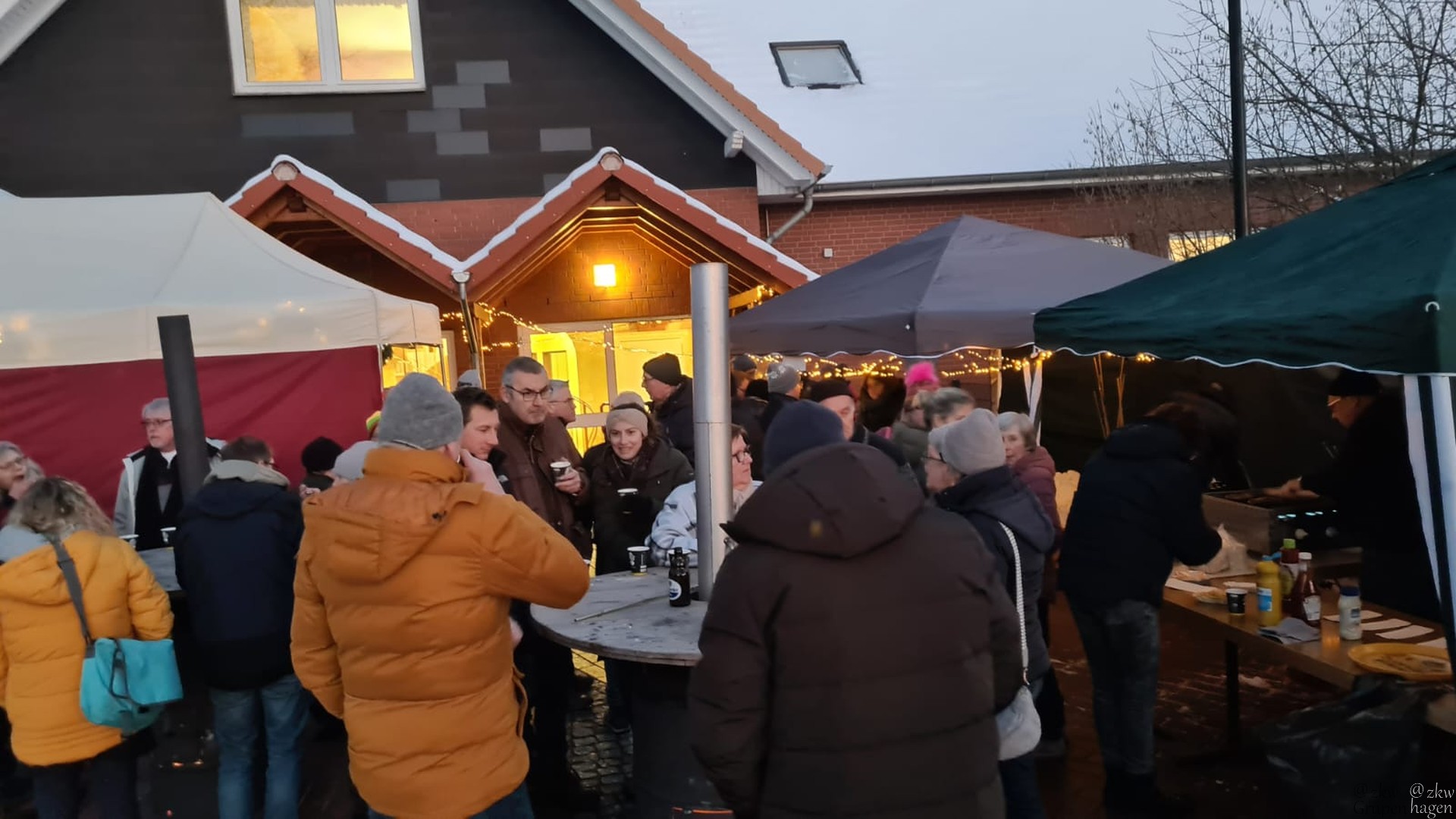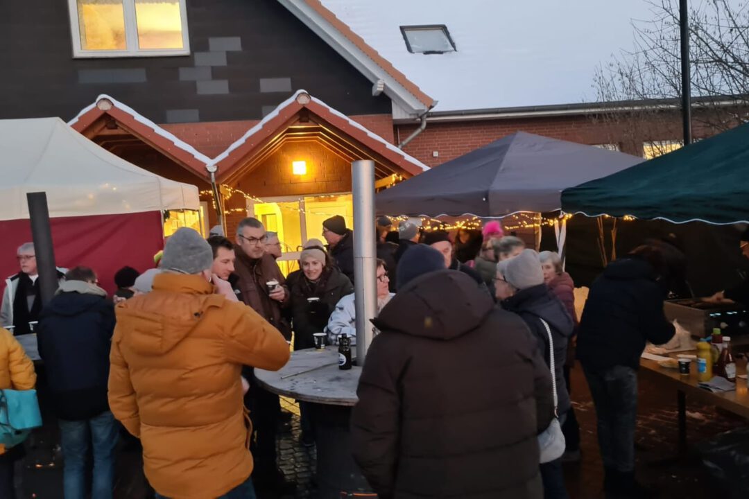 Im DGH wurde Kaffee und Kuchen serviert, draußen gab es neben Heiztonnen bei Minusgraden und Sonnenschein eine leckere Lauchkäsesuppe sowie Glühwein, Kinderpunsch, Bier, Bratwurst und Pommes.